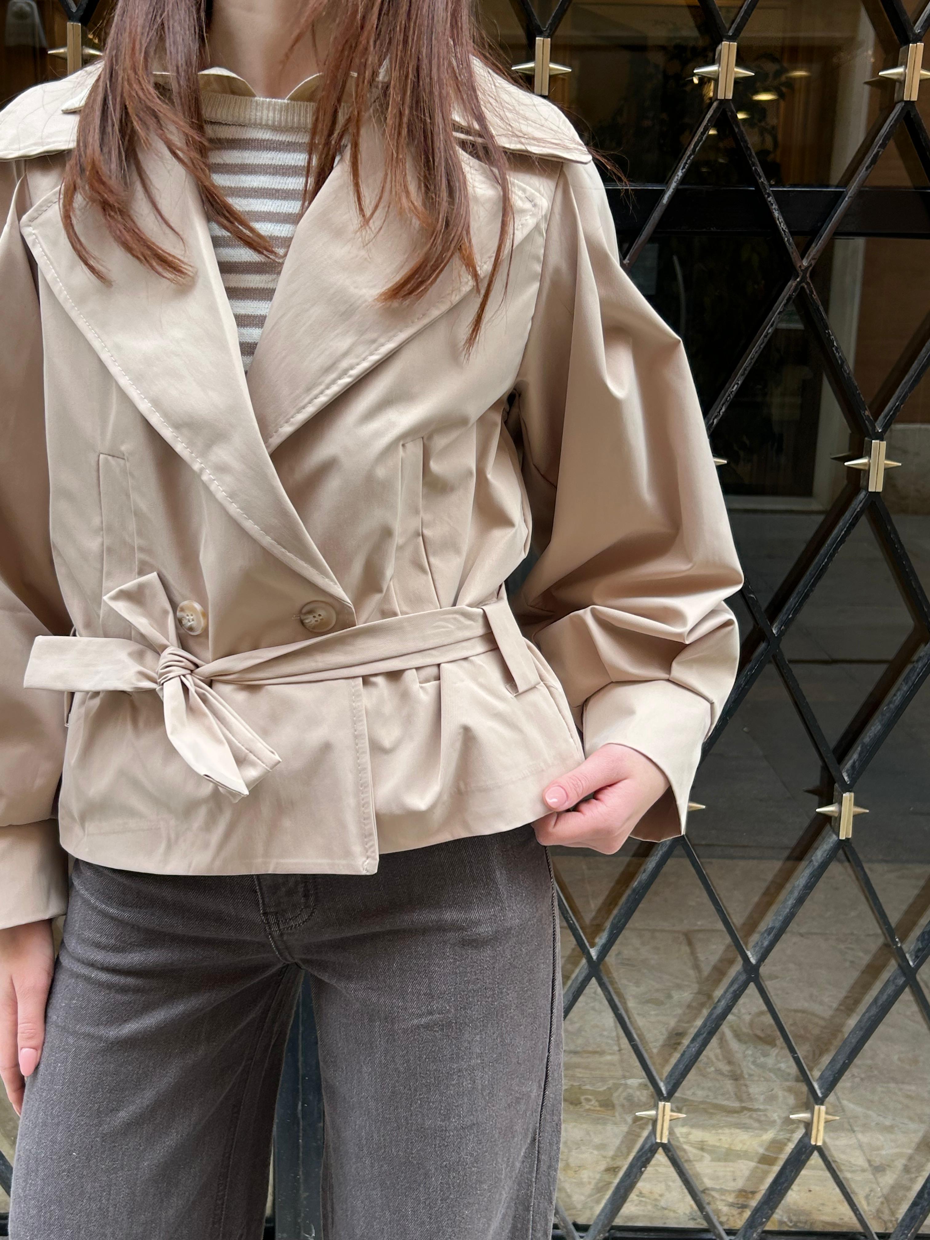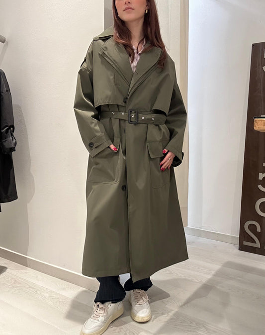 Trench lungo con cintura e doppio colletto