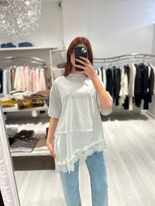 T-shirt manica corta con pizzo