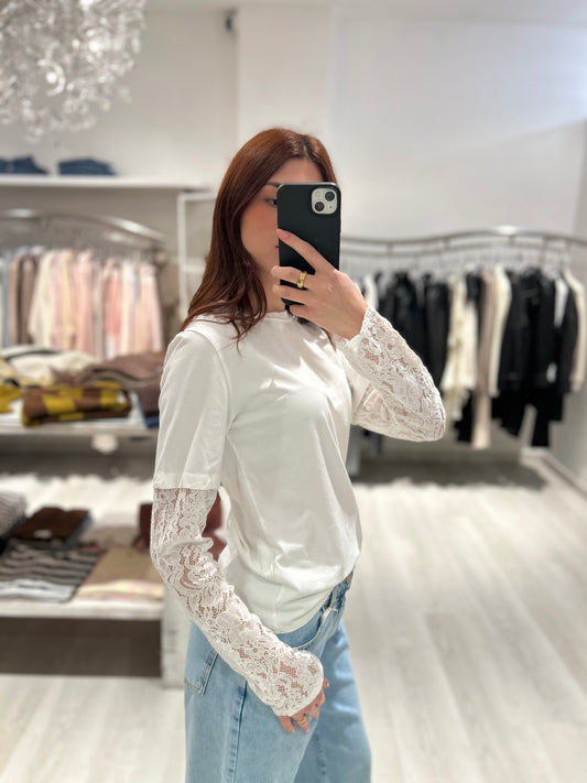 T-shirt manica lunga con pizzo