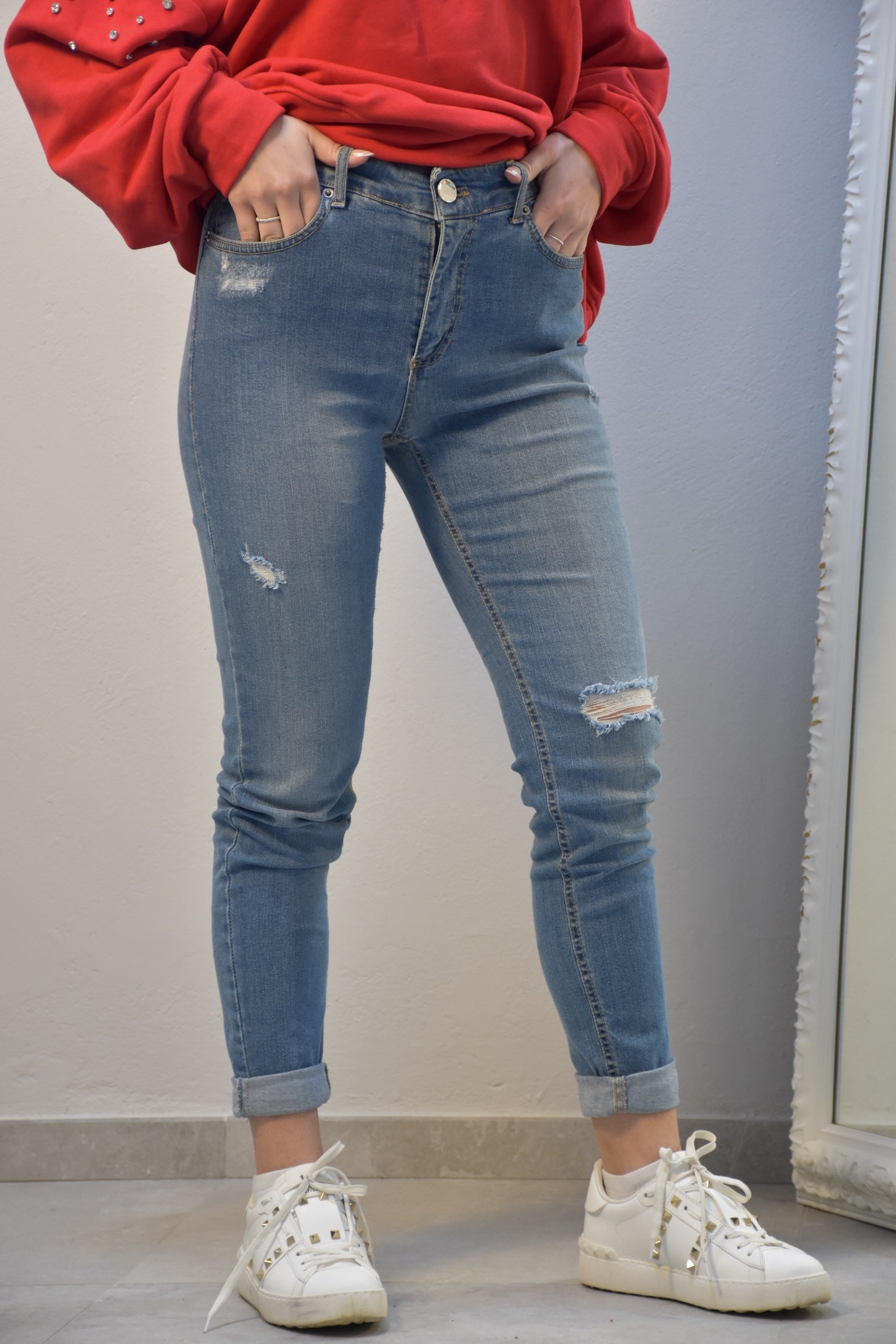 Descrizione: Jeans con strappi a gamba stretta. Passanti in vita.