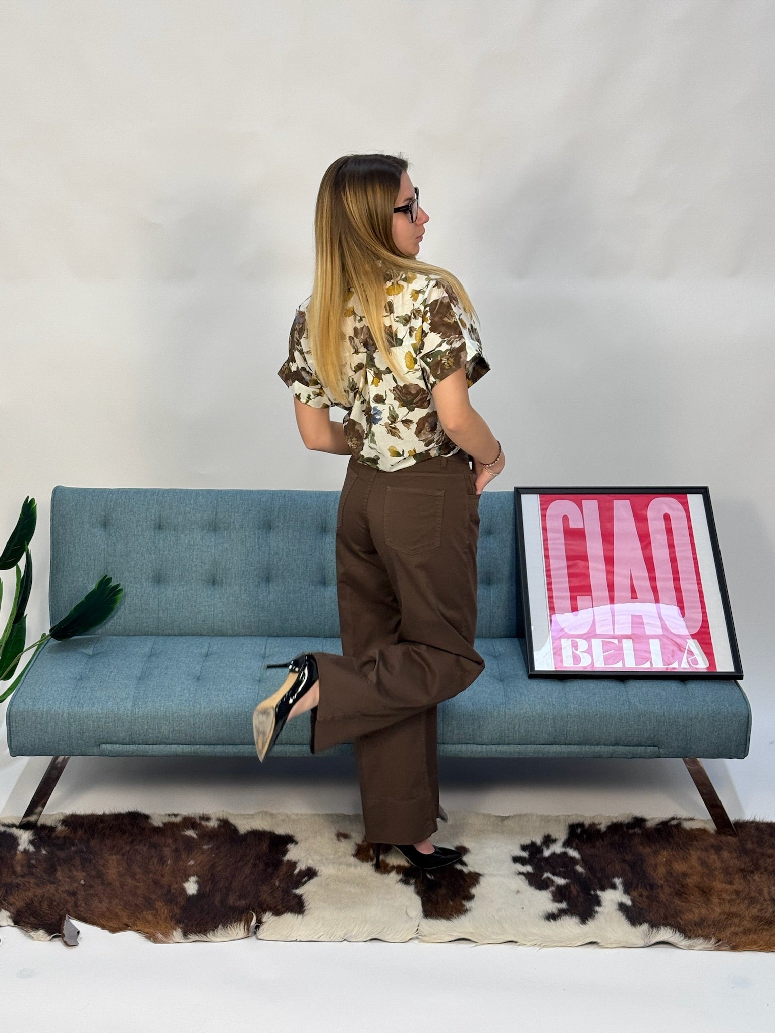 Descrizione: Pantalone a palazzo molto comodo, tasche laterali e bottone in cintura.